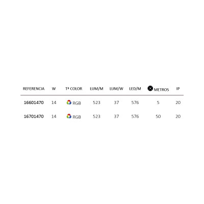 ROMA COB RGB –Tira LED COB RGB 24V 14W, 576 Led/m IP20, Corte 5 cm