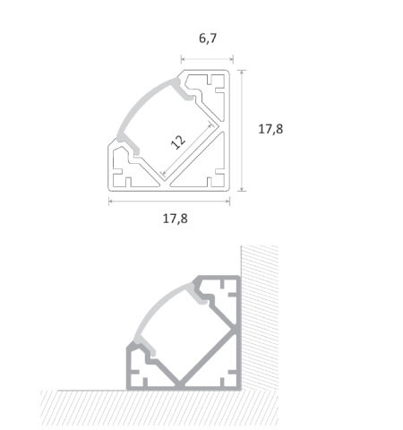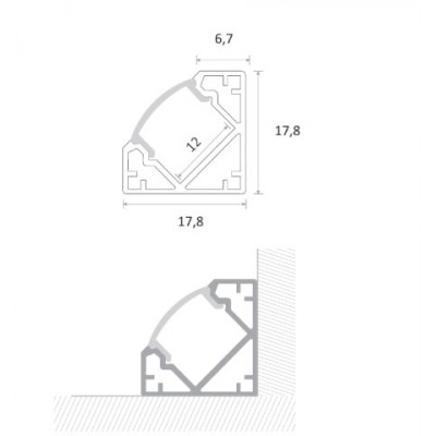 CURSA –Perfil de Aluminio Ángulo Anch.17.8 x Alt.17.8 mm para Tira LED, Difusor PC, 2 metros con Soporte de Montaje